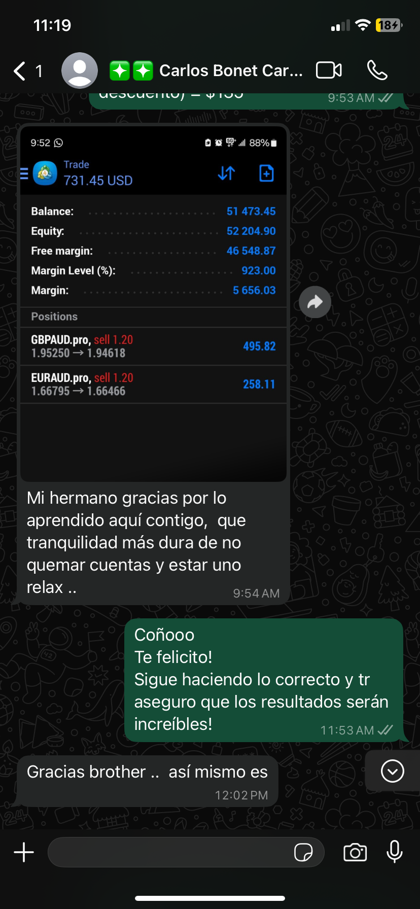 Desde muy joven tuve bien presente que no quería ser un empleado ni estar atado a un horario. Luego de haber intentado en varios modelos de negocios en diferentes industrias, conocí este mundo de Trading en Forex, después de muchos años de aprendizajes, tropiezos, haber intentado varios cursos y haber sido estafado, gastando miles de dólares, logré convertirme en un Trader Profesional alcanzando la rentabilidad consistente, generando +5 cifras mensuales para mí y mis estudiantes.